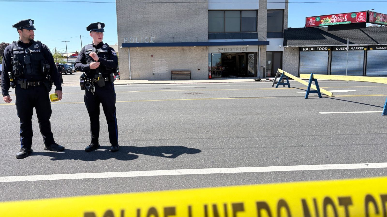 The incident happened Tuesday, April 21, 2026, at the 2nd District police building along Castor Avenue.